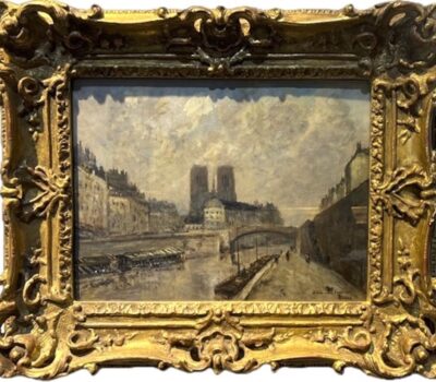 Frank Boggs was a master of cloudy skies in landscape paintings, but was more strongly attracted to the soft light of misty mornings and rainy afternoons than the brilliant sunlight of his Impressionist peers.  Contemporary American critics tended to view Boggs as an Impressionist, especially when he exhibited in New York early in his career.  But although his brush became loose and free and his palette lightened as he matured, the artist never completely adopted Impressionistic methods.