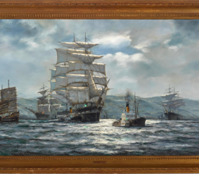 Henry Scott was a painter of marines and coastal subjects strongly associated with the Royal Society of Artists. As well as painting lucrative shipping portraits for some of his wealthy clientele, he also executed a number of works of British and American clippers. His works have often been confused with those of Montague Dawson. Scott worked in a similar way to that of Dawson and captured a wonderful freshness and feel of immediacy. Scott’s palette is striking, with all surfaces and elements observed, capturing every movement in full flow. His sails are nearly always bellowed with a good stiff breeze, which is further emphasised by the spray of the water being wisped across the top of the choppy seas. Particularly notable are his skies which move the subject helping the canvas feel alive. In 1970 Scott was commissioned to paint ‘Morning Cloud’ which was skippered and owned by the then Prime Minister, The Right Honourable Edward Heath, P.C., M.B.E., M.P.. Scott exhibited at the Society of Marine Artists; The Royal Exchange, London; The Guildhall, London and The Royal Academy. He also exhibited at the St. Malo Museum, France and at Madison Square in New York. He was honoured as a Fellow of the Royal Society of Arts and awarded an honorary Life Member ‘Cape Homers’ by the International Association of Master Mariners.