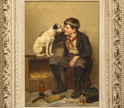 John George Brown was born in Durham, England on November 11, 1831. His parents apprenticed him to the career of glass worker at the age of fourteen in an attempt to dissuade him from pursuing painting. Between 1849 and 1853, he studied at the School of Design in Newcastle-on-Tyne and at the Trustees Academy in Edinburgh while working at the Holyrood Glass Works. After moving to New York City in 1853, he studied with Thomas Seir Cummings at the National Academy of Design where he was elected a National Academician in 1861. Brown was the Academy’s vice-president from 1899 to 1904.