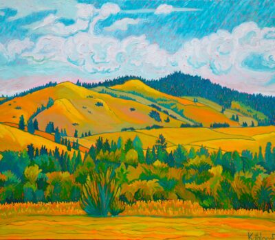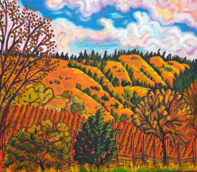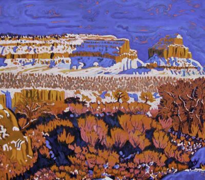 In Pennsylvania, she taught printmaking and costume design and co-founded the Printmakers Studio Workshop of Central Pennsylvania. Frank shifted to painting, seeking light and pattern in Pennsylvania farms, California scenery from mountains to sea and now the unique landscapes of the Southwest.