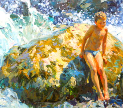 The fluid brush strokes with quick and free manner create a full movement within the detail of his art. The capturing of these fleeting moments in bold energetic colors make for a favorite among collectors.