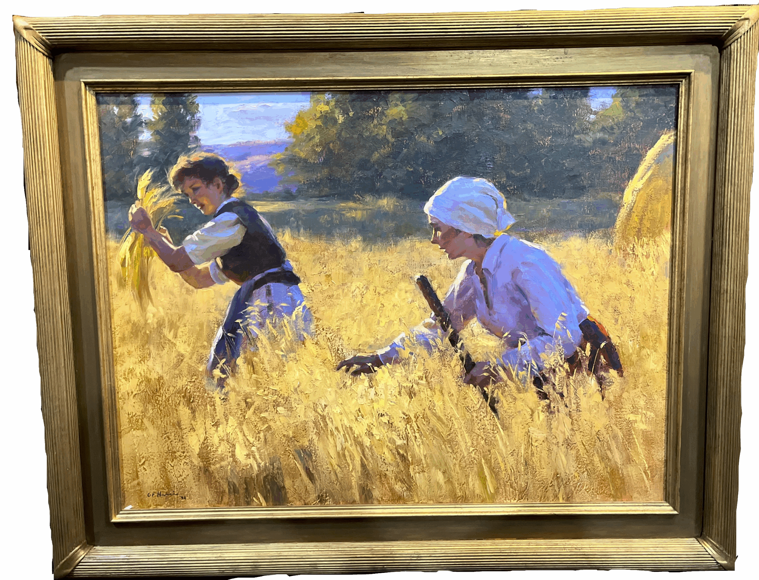 Gregory Frank Harris, a versatile artist born in California in 1953, demonstrates an extraordinary journey through art, with a family background that includes a painter mother and a miner father. He and his twin brother, an entomologist and drummer, grew up in a creatively fertile environment. A prodigy from a young age, Harris began drawing and sculpting in clay by five and was playing piano by ear at eight. His formal artistic training included classes throughout his school years and later focused on ceramics and raku firing. In 1972, he attended Long Beach University, studying art and theater while beginning to write songs and work with watercolors. From 1973 to 1986, he balanced his art with a parallel music career, playing in bands and professional gigs on the West Coast. A pivotal moment came in 1977 in Spokane, Washington, when, inspired by a book on French Impressionism, he began painting with acrylics and oils, diligently copying the old masters. A twist of fate led to three of these copies appearing in the 1980 movie “Annie.” From 1982 to 1996, a personal agent sold his original impressionist-style oils, pastels, and watercolors to galleries across the U.S., while he exhibited in juried shows, won awards, and practiced plein air painting in the Laguna and Irvine Canyons. His studies continued at the Art Student’s League in New York in the fall of 1985, and his musical passion persisted, culminating in a 1987 performance of his original music with a large band at the Roxey Theater in L.A. After living in Duxbury, Massachusetts, from 1991 to 1996—where he also performed in community theater—he moved to Santa Fe after a workshop at the Fechin Institute. He lived there for five years, deepening his studies in contemporary realism and plein-air painting before relocating to Lyme, Connecticut, in November 2000. There, he painted from life, became a part-time teacher, an elected member of the Lyme Art Association, and a private instructor. He is currently a member of the Putney Painters group in Vermont with Richard Schmid. Harris’s artistic ventures span landscapes, figurative works, and abstracted renditions, reflecting influences from classic masters to contemporary icons like Warhol and Basquiat. His dedication extends beyond art, generously supporting various local charities with numerous donated artworks.